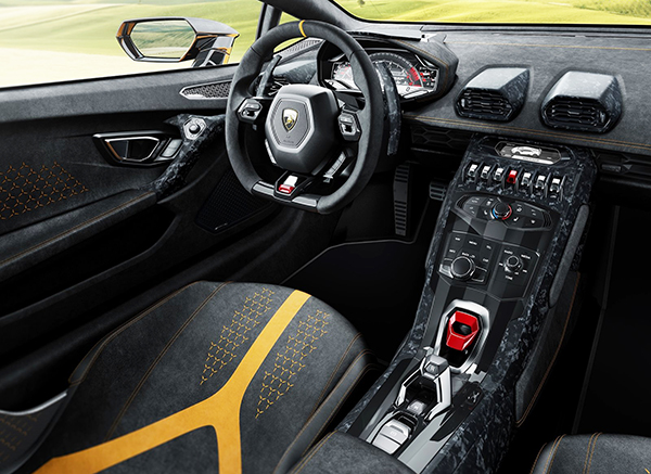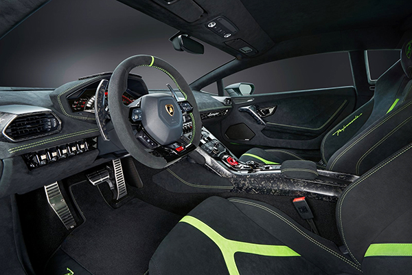 Conjunto >> Tradição de décadas em pistas de corrida, associada a um estilo único de design. Esse é o resumo do novo Lamborghini Huracán Performante. Em relação ao Huracán, sua suspensão ficou 15% mais rígida e, segundo o fabricante, ele está ainda mais equilibrado em curvas. Como opcional há um sistema de amortecimento eletrônico, projetado especialmente para o uso em autódromos. A direção hidráulica eletromecânica também é novidade. Por dentro a Lamborghini nunca exagera no luxo dos seus modelos e sim, prioriza a esportividade. O ambiente é todo forrado com Alcântara e couro e os detalhes são feitos em alumínio e aço escovado.