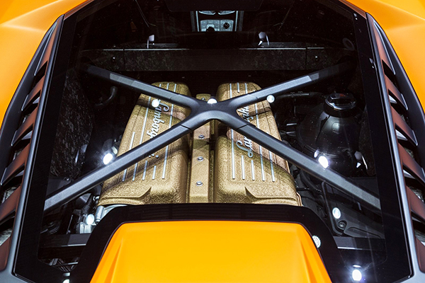 Numa homenagem a alguns carros icônicos da marca, como o lendário Lamborghini Diablo, por exemplo, o coletor de escapamento desse bólido é todo forjado em bronze. Um dos detalhes técnicos mais preciosos desse motor são as novas válvulas feitas de titânio, responsáveis por parte da ampliação do desempenho do motor. Toda a força é administrada por uma caixa de câmbio automática de dupla embreagem e 7 velocidades.