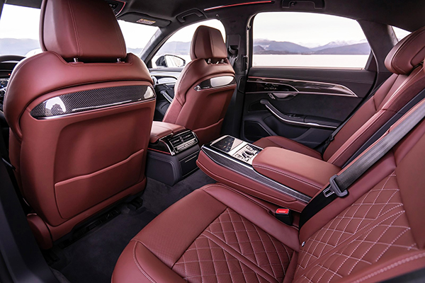 Formal e elegante, pela primeira vez ele pode vir com o novo pacote exterior ´S line´, que acrescenta mais esportividade, aproximando-o um pouco da estética mais feroz da configuração ´S8´. Grande por fora (5,19 m) e com uma distância extre-eixos de 3,0 m, o A8 oferece um salão espetacular para quatro passageiros viajarem de primeira classe.