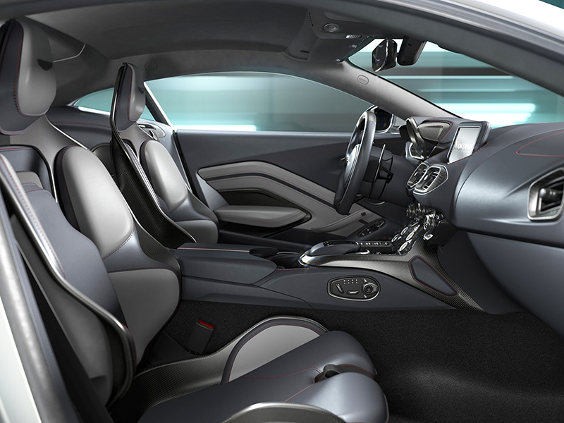 De acordo com os dados técnicos adiantados pela fabricante, o novo modelo foi totalmente aliviado em peso, ganhando partes em fibra de carbono e alumínio. Seu sistema de freios em carbono-cerâmica, as rodas e até os escapamentos estão mais leves e resistentes. Para administrar a potência, a Aston Martin acoplou uma transmissão automática da alemã ZF com 8 velocidades.