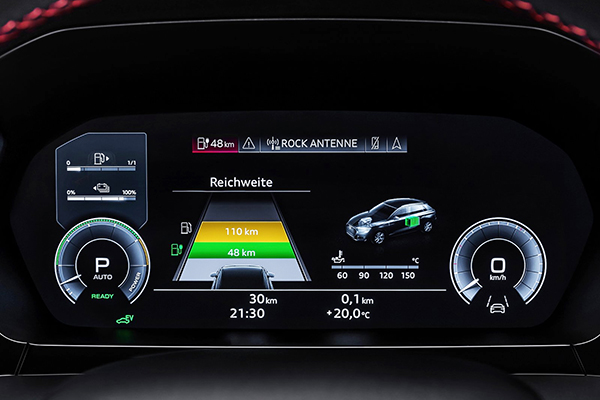 A Audi atesta que, dependendo da intensidade da condução, ele consegue percorrer 100 km de distância consumindo apenas 1,5 litro de gasolina + parte da carga das baterias.