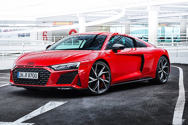 A unidade de 10 cilindros dispostos em “V” e com 5.200 cm³ (5,2 litros) é montada no centro do chassi. Naturalmente aspirado, esse motor impulsiona o R8 da imobilidade aos 100 km/h em 3,7 segundos (3,8 segundos para o Spyder) e atinge uma velocidade máxima de 329 km/h (327 km/h para o Spyder).