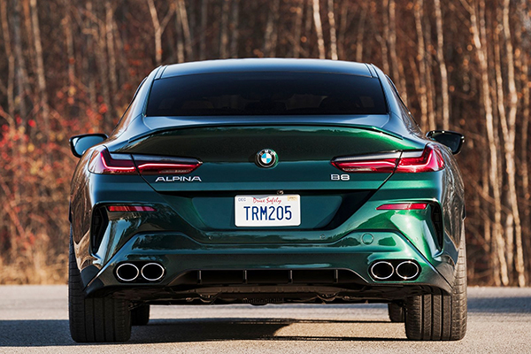 A aparência do B8 Gran Cupê é caracterizada por linhas elegantes que enfatizam magistralmente a silhueta do veículo. A exclusividade é ainda mais enfatizada pelos componentes aerodinâmicos Alpina. As rodas forjadas tipo “Alpina Classic” de 21 polegadas com design minimalista de 20 raios, são um identificador desse produto único.