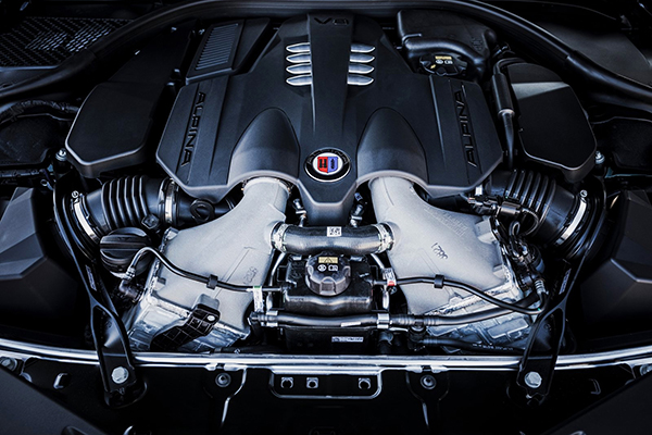 O motor de oito cilindros do BMW Alpina B8 é caracterizado por uma entrega de potência dinâmica e suave e oferece excelente capacidade de resposta em todas as faixas de rotação. A unidade V8 de 4,4 litros biturbo, atinge potência máxima de 612 hp, e o pico de torque chega aos 81,5 kgf.m, já disponíveis aos 2.000 rpm! Segundo os dados do fabricante, o B8 acelera de 0-100 km/h em apenas 3,3 segundos, cravando velocidade máxima de 323 km/h.