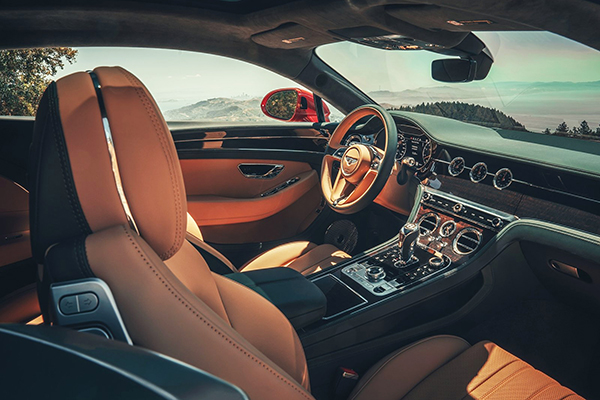 Por dento o Bentley Continental GT V8 oferece um refinamento incomparável. Ele combina perfeitamente diversos tipos de materiais, como couros da mais alta qualidade e madeiras raras. Os bancos, evidentemente, são ajustados eletricamente e oferecem aquecimento e ventilação.