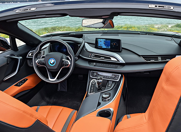 Características >> Assim como o BMW i8 cupê, ele também utiliza a inovadora arquitetura LifeDrive, desenvolvida para veículos BMW i, cuja estrutura reúne um chassi de alumínio e uma célula de passageiros feita com fibra de carbono. O conjunto oferece perfeita distribuição de peso e o premiado sistema híbrido plug-in BMW eDrive contempla um motor elétrico que funciona de forma sincronizada a um propulsor a combustão de três cilindros e 1.499 cm³ movido a gasolina e dotado de tecnologia BMW TwinPower Turbo.