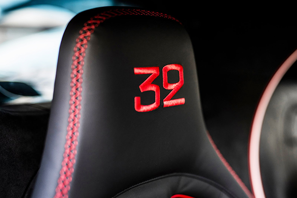 E os códigos clássicos de corridas continuam por toda a cabine, incluindo uma incrustação especial no console central em alumínio anodizado preto com uma inscrição em prata (também pintada à mão). Os motivos estendem-se às soleiras das portas, encostos de cabeça e luzes de entrada.