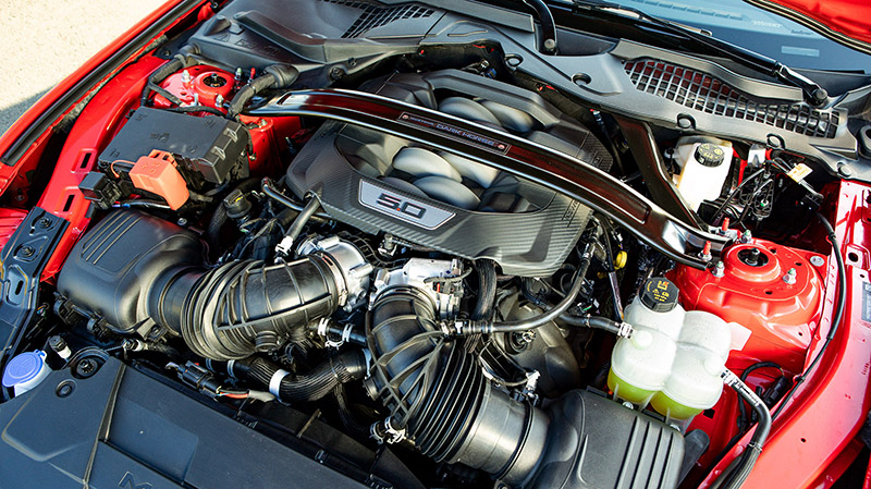 O bólido é um carro de rua, mas com acertos para pistas de corrida, tanto que serviu de base para a criação do Mustang GT3 de provas. O seu motor é o já conhecido Coyote 5.0/V8 aspirado mais potente da história, com 507 cv de força máxima. Entre outros avanços, ele conta com biela e virabrequim herdados do GT500 e uma calibração exclusiva feita para o Brasil. Segundo os dados técnicos do fabricante, esse esportivo acelera de 0 a 100 km/h em 3,7 segundos e tem velocidade máxima de 250 km/h, limitada eletronicamente.