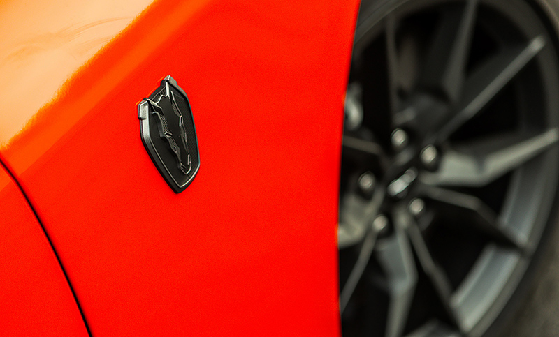 A transmissão automática de dez velocidades e a suspensão adaptativa MagneRide também trazem calibração específica para alto desempenho. Já a direção é 25% mais responsiva e o diferencial traseiro (Torsen) conta com um sistema de arrefecimento diferenciado. Os freios Brembo de alta performance com discos dianteiros flutuantes seguram a máquina com eficiência e mantêm a performance de frenagem em sessões prolongadas na pista, reduzindo significativamente a propensão ao superaquecimento.