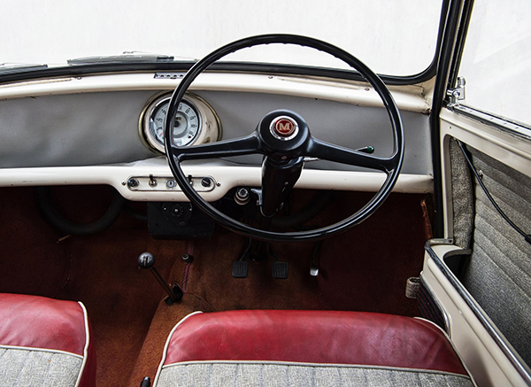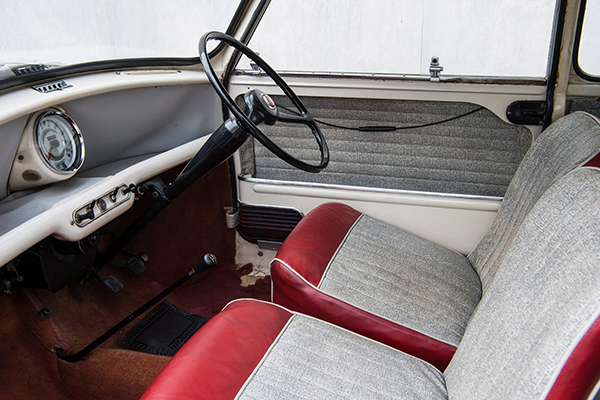 O Austin MINI clássico seguia uma proposta racional: a de oferecer o máximo de espaço possível num compacto com pouco mais de três metros de comprimento. O motor e câmbio transversais interferiam pouco na cabine, enquanto as rodas nas extremidades abriam bastante espaço interno. Cada cantinho era aproveitado, com enormes porta-objetos nas portas e bancos com vão inferior para se levar pequenos volumes embaixo deles.