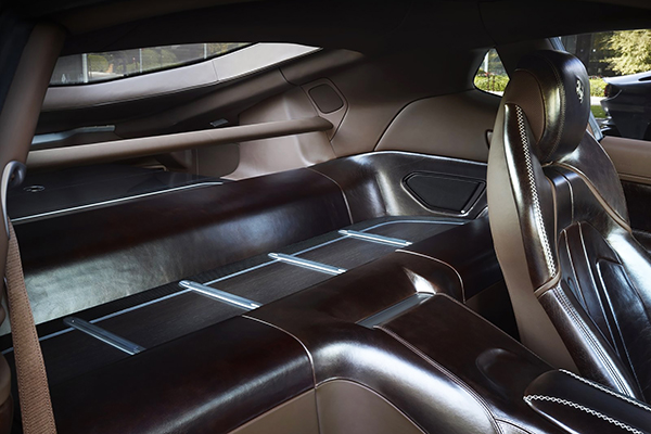 Por fora, a frente também ganhou um toque especial com novos faróis e a magnífica traseira recebeu quatro elegantes lanternas redondas que criam um diálogo visual perfeito com as quatro saídas dos escapamentos. As rodas de 20 polegadas também foram criadas exclusivamente para esta Ferrari. Apesar da possibilidade de mudanças no motor, o lindo carro teve o ´trem de força´ herdado sem alterações da GTC4 Lusso.