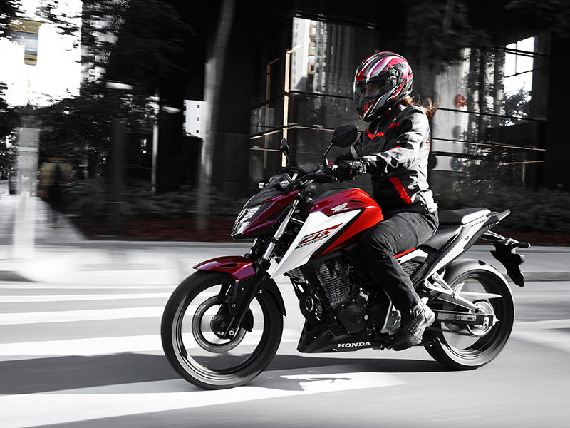 A Honda CB 300F Twister é equipada com rodas de liga-leve calçadas com pneus radiais. Quanto à praticidade, a CB 300F Twister se destaca pelo seu painel Blackout com tela LCD e porta USB-C, e item de alta tecnologia como a iluminação full-LED. O design é um ponto alto do modelo, caracterizado por linhas proeminentes que dominam a área do tanque de combustível, carenagem de farol minimalista e arrojada rabeta, além do banco de dois níveis que define o caráter esportivo dessa máquina.