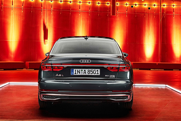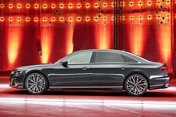 Na sua quarta geração desde 2017, o A8 ganhou a sua última reestilização antes de mudar por completo, certamente recebendo no futuro uma versão elétrica ou no mínimo, com propulsão híbrida. As mudanças mais significativas estão na parte externa, já que o sedã ganhou uma grade bem maior e o grupo óptico foi completamente redesenhado.