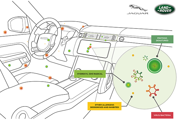 A Jaguar Land Rover fez uma parceria com o Perfectus Biomed, laboratório britânico líder em microbiologia e virologia, para realizar o teste de câmara selada, projetado para simular um sistema de ventilação veicular em modo de recirculação durante um ciclo de 30 minutos. A pesquisa independente mostrou que vírus e bactérias foram inibidos em até 97%.