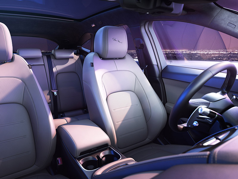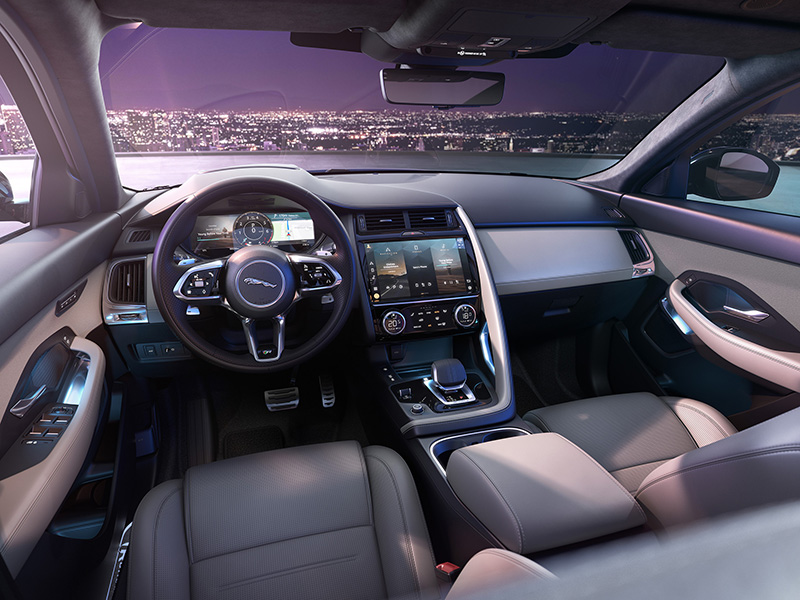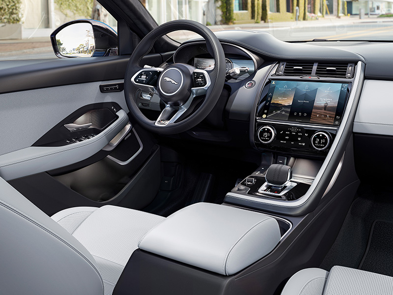 Oferecendo sistema de filtragem de ar na cabine, o novo Jaguar E-Pace também entrega bancos dianteiros com 12 ajustes elétricos, ar-condicionado bizone, iluminação interna em LED e Sistema de Som Meridian.