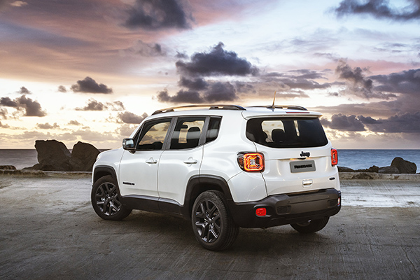 Jeep Renegade 80 Anos >> Baseada na versão Longitude, a série especial 80 Anos do Renegade está disponível tanto na versão Flex quanto na Diesel. O modelo em sua versão comemorativa traz barras de teto, grades, retrovisores, logos e rodas de 18” escurecidos em tom grafite. Já a parte interna conta com revestimento interno do teto em preto e acabamentos em Gloss Black, além de bancos com costuras exclusivas. A série especial está disponível nas cores Preto Carbon, Cinza Antique, Prata Billet, Verde Recon, Azul Jazz e Branco Polar.