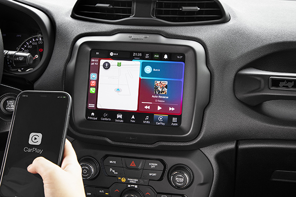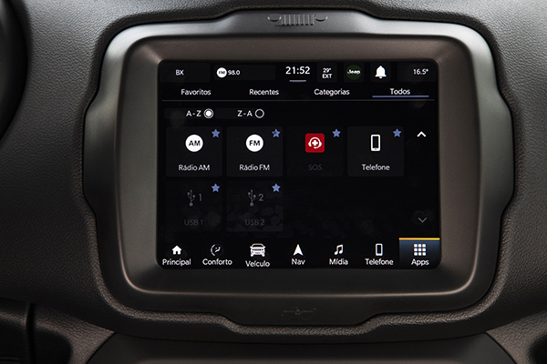 4G Wi-fi Hotspot >> Os Jeep Renegade já saem de fábrica com o eSIM, chip virtual da TIM. Assim, após realizar o cadastro com a operadora, já será possível utilizar o Wi-fi dentro do carro por até oito aparelhos ao mesmo tempo. O usuário também terá acesso a apps de streaming podcasts e audio books, conforme produto escolhido. Em parceria com a TIM, a Jeep oferece um período de trial gratuito do Wi-fi Hotspot por um mês para todos os clientes. O usuário pode escolher no momento do cadastro o plano que mais se adequa à sua necessidade e, ao final do período de teste, poderá manter o plano mediante pagamento feito via cartão de crédito. A TIM oferece três planos para os clientes Jeep: Basic de 5GB com audio book por R$ 30, Standard de 10GB, Audiobook e Olá (podcast light) por R$ 50 e Premium de 40GB com os mesmos apps do anterior e Cartoon Network por R$ 100.