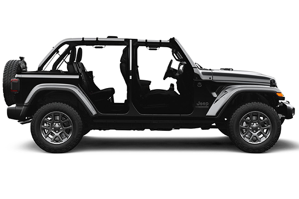 Jeep Wrangler 80 Anos >> SUV mais capaz de todos os tempos, o Wrangler, lançado em 1987 e descendente direto do CJ, não poderia ficar de fora da homenagem de aniversário da marca. Baseada na versão Sahara Unlimited 4 Portas, a série especial de 80 Anos do modelo traz, externamente, novas rodas de alumínio de 18 polegadas em grafite, além de outros detalhes no mesmo tom, como contornos da grade frontal e molduras para farol de neblina, e badges “80th anniversary”. No seu interior, o Wrangler 80 Anos vem com badge interno “80th anniversary” nos porta-copos dianteiros, tag “80th anniversary” nos assentos do motorista e do passageiro dianteiro e novos tapetes, com costura exclusiva e o tag comemorativo. O novo Wrangler Série Especial 80 anos tem preço sugerido de R$ 385.990.