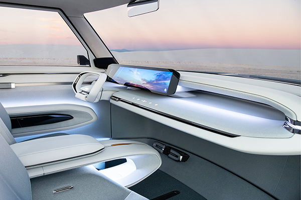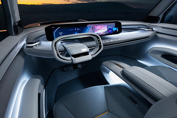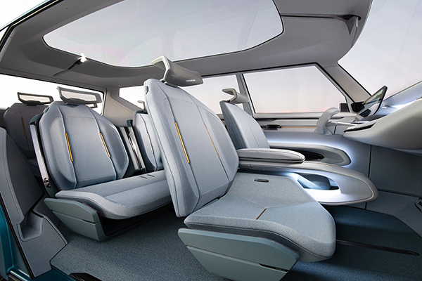 Num contraponto drástico em relação à parte de fora, o interior do Kia EV9 Concept é minimalista e futurista, com poltronas moduláveis (capazes de se transformar numa mesa), enorme tela de 27 polegadas e amplo teto solar panorâmico.