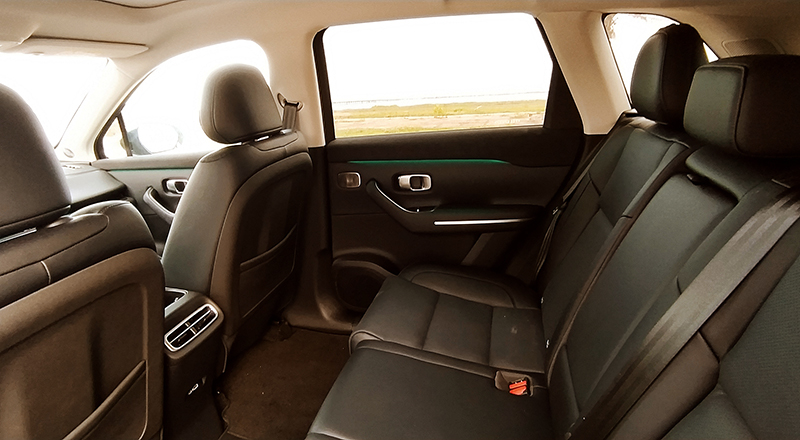 O espaço para os ocupantes dos assentos traseiros é espetacular, possibilitando até um cruzamento das pernas. Tudo favorecido pelo entre-eixos de 2,8 metros. No total, ele mede 4,7 m de comprimento, equiparando-se em porte, por exemplo, ao Jeep Commander. O porta-malas comporta 435 litros e o fabricante chinês declara uma autonomia total de até 950 km em percursos urbanos, extensão essa medida no ciclo WLTP (Worldwide Harmonised Light Vehicle Test Procedure – Procedimento Mundial Harmonizado de Testes para Veículos Leves).