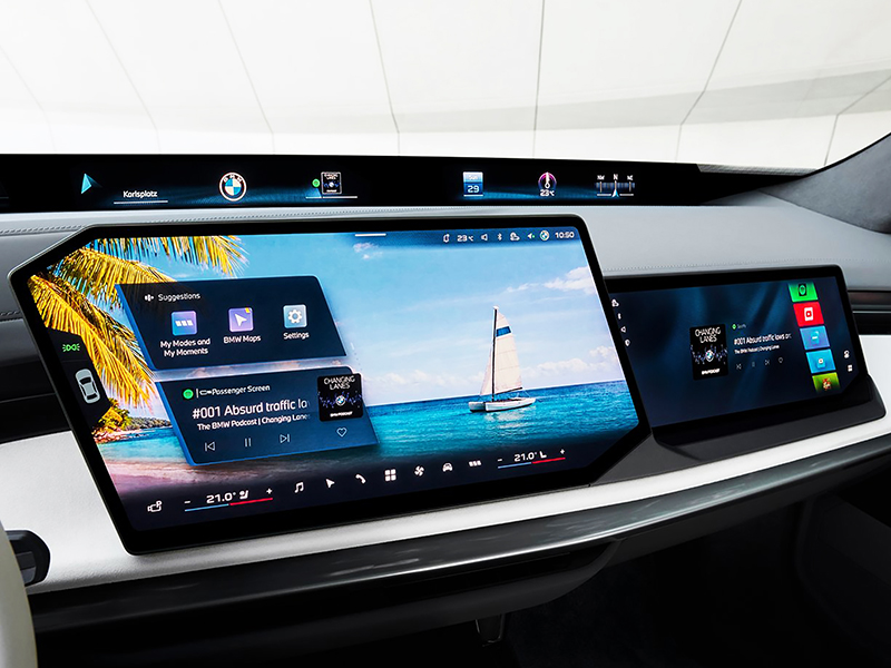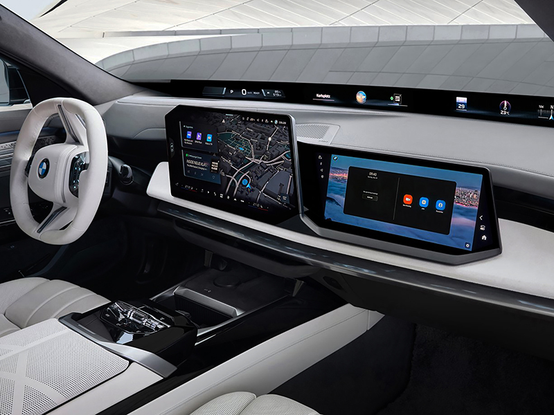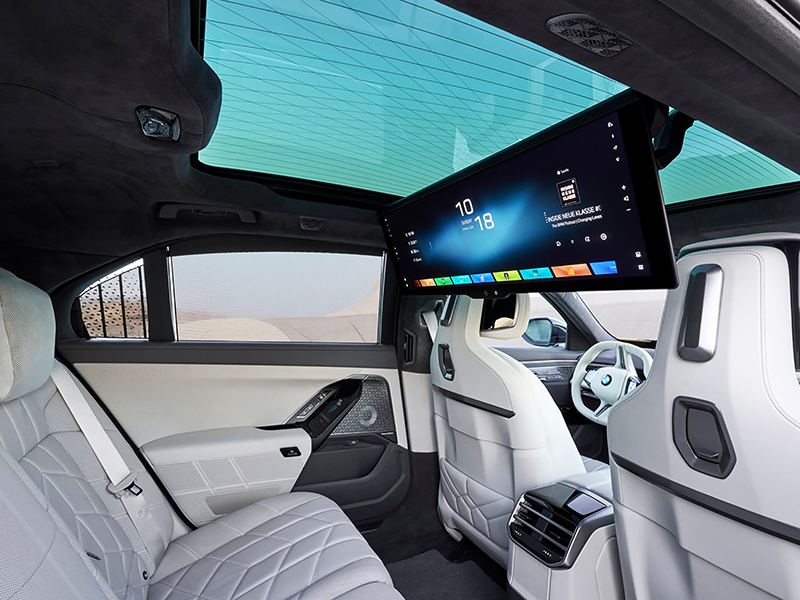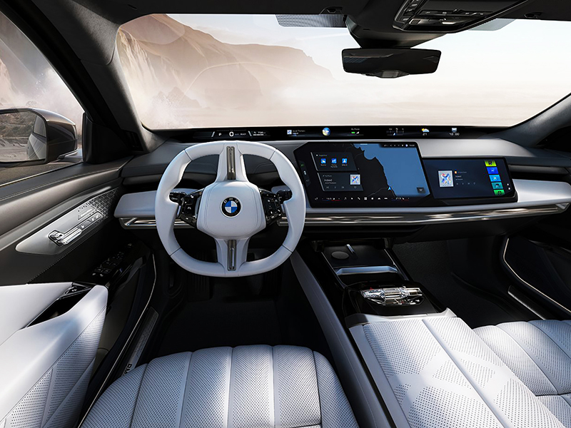 Os destaques incluem o novo Panoramic iDrive com Passenger Screen, a tela Theatre Screen aprimorada, que permite experiências cinematográficas ou trabalho em movimento para os passageiros do banco traseiro, um conceito de iluminação imersiva com faixa de luz ambiente e novos elementos luminosos, além de um sistema de som Bowers & Wilkins com suporte a Dolby Atmos para uma experiência de áudio excepcional.