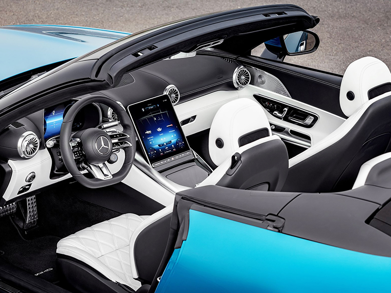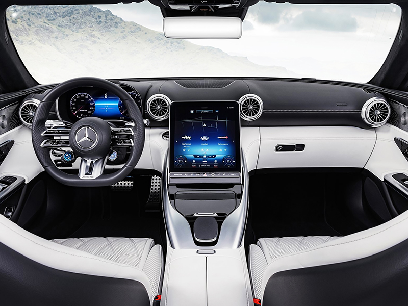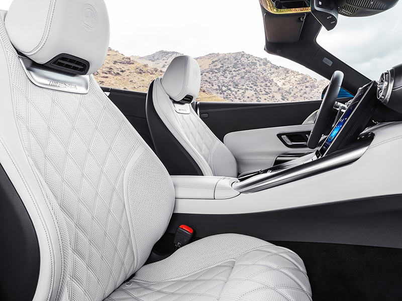 Como resultado, o Mercedes-AMG SL 43 entrega uma potência de 381 cv e torque máximo de 48,9 kgf.m, além de um impulso adicional de curto prazo de 14 cv do RSG em determinadas situações de condução. O novo modelo básico da família SL também brilha com o extenso equipamento padrão. Além disso, inúmeras opções que aumentam o conforto e a segurança oferecem uma ampla gama de possibilidades de individualização.