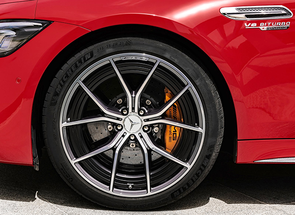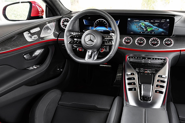 O modelo de alto luxo traz suspensão AMG Ride Control com o novo sistema de amortecimento, freios com discos de cerâmica e sistema multimídia MBUX com telas e funções específicas para híbridos AMG.