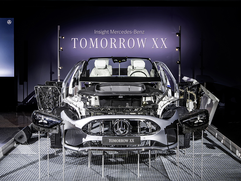 Descarbonização e economia circular como pilares do programa >> O Tomorrow XX tem como objetivo reduzir o impacto de carbono dos veículos desde a fase inicial de design até o fim da vida útil. O programa analisa minuciosamente todos os componentes e materiais, incluindo partes não visíveis, como isolamentos, avaliando oportunidades de revisão do projeto, substituição de matérias-primas e aumento na possibilidade de reciclagem. Mais de 40 novos conceitos estão em pesquisa e desenvolvimento, com potencial para reduzir significativamente as emissões de CO? e ampliar de forma expressiva o uso de materiais reciclados e secundários, sempre alinhados aos padrões de qualidade, design e conforto da Mercedes-Benz.