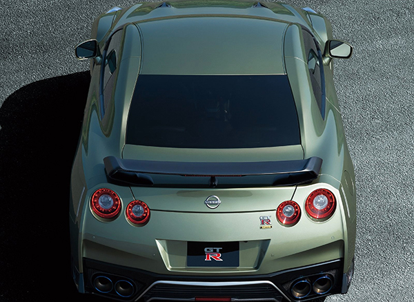 Encaixado acima do GT-R Premium, o novo GT-R T-Spec adiciona para-lamas dianteiros mais largos, rodas de liga de alumínio forjada tipo ´Rays´ pintadas em dourado e um spoiler traseiro de fibra de carbono. Espelhos retrovisores na cor da carroceria, dutos pretos do capô e emblemas “T” completam as mudanças externas.