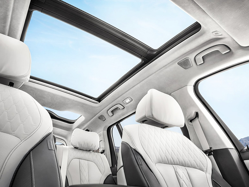 Todo o luxo que se espera do SAV topo de linha da BMW está presente. Desde o couro premium Merino que reveste os bancos, passando pelo acabamento de madeira no console central e o alumínio dos botões do volante e do console central. Dentre as novidades, a que mais chama atenção é o BMW Live Cockpit Professional, que estreou no BMW iX. A incrível tela curvada é composta por duas partes com 12,3” e 14,9”.
