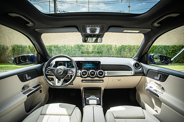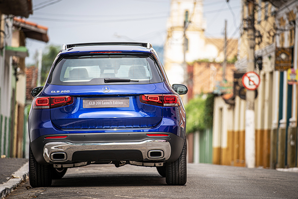 O SUV médio é uma opção para quem quer um pouco mais de espaço que o GLA, já que o GLB tem 10 cm a mais de comprimento e acomoda 7 passageiros, sendo que os dois últimos a utilizar a terceira fileira de assentos, têm que medir, no máximo, 1,68 m.