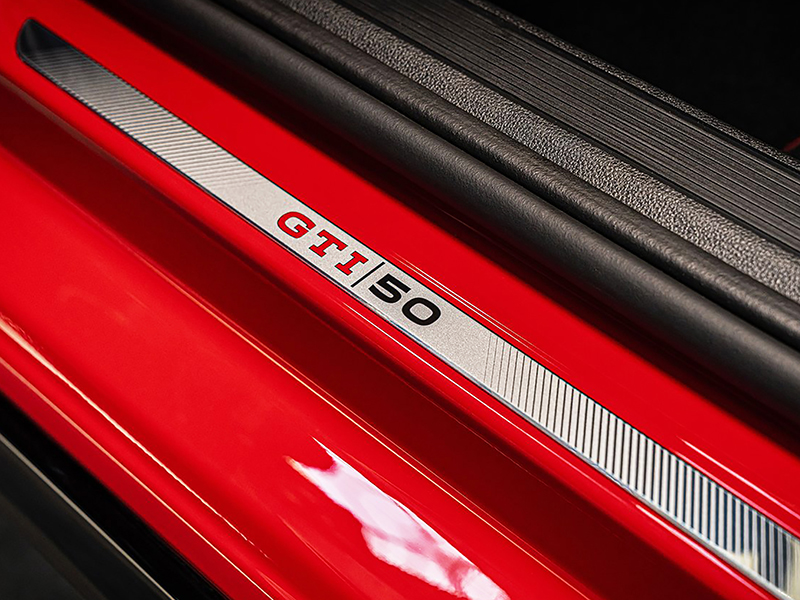 O Golf GTI Edition 50 ostenta vários detalhes internos e externos exclusivos: cintos de segurança vermelhos, bancos esportivos com padrão xadrez com uma linha em Verde Racing e elementos em veludo sintético, volante esportivo multifuncional em couro e com novo design, aletas de troca de marchas integradas para o câmbio DSG de sete marchas; logotipo GTI 50 aplicado no spoiler do teto e na parte interna dos retrovisores externos; acabamentos especiais nas soleiras das portas, teto com pintura preta, capas dos retrovisores externos pretas; ponteiras de escape pretas e faixa lateral marcante nas longarinas.