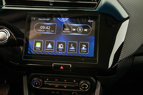 Por dentro o Tiggo 3x Turbo tem visual moderno e detalhes que variam entre partes cromadas, em black piano e também na cor prata. Sua tela multimídia sensível ao toque tem tamanho de 9 polegadas e é compatível com Apple Car Play e Android Auto. A versão ´Pro´ traz, ainda, cluster digital em tela LCD de 7” colorida, enquanto a versão ´Plus´ possui um painel combinado com computador de bordo em tela digital de 3.5”.