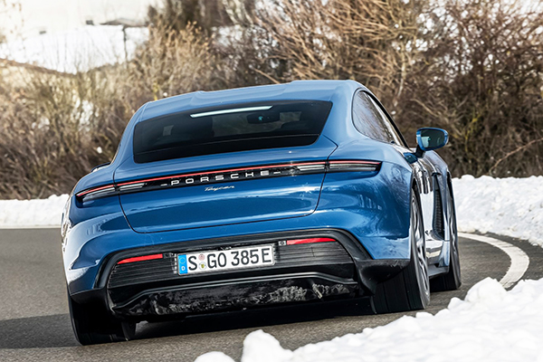 As características distintivas incluem rodas ´Aero´ de 19 polegadas e pinças de freio anodizadas pretas. O spoiler dianteiro, as soleiras laterais e o difusor traseiro em preto são iguais aos do Taycan 4S; e os faróis LED são de série.