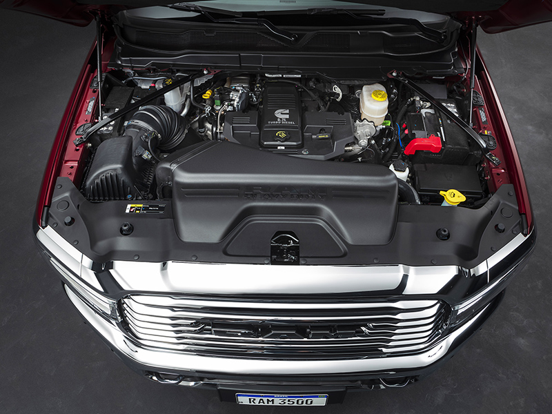 Bem acima da concorrência, o motor da nova picape RAM 3500 esbanja força: a unidade turbo/diesel produzida pela Cummins®, tem 6 cilindros em linhas, 6.7 litros (6.700 cm³) e entrega 371,8 hp (377 cv) e torque gigantesco de 1.150 Nm (117,27 kgf.m)! A unidade precisa utilizar o aditivo Arla 32 para tratar os gases de exaustão e reduzir a emissão de poluentes. Enfim… é ´a picape do patrão´! O resto é conversinha mole de botequim da esquina. Abaixo, as três configurações destrinchadas.