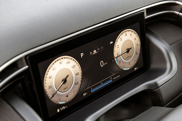 Por dentro a Hyundai também caprichou na escolha dos materiais e no acabamento primoroso. A Santa Cruz mistura um aspecto inegável de robustez, mas entrega o requinte característico da marca. O display central premium tem uma tela infoentretenimento sem bordas com impressionantes 10 polegadas de tamanho e o display de cluster digital central (opcional) também mede 10 polegadas.