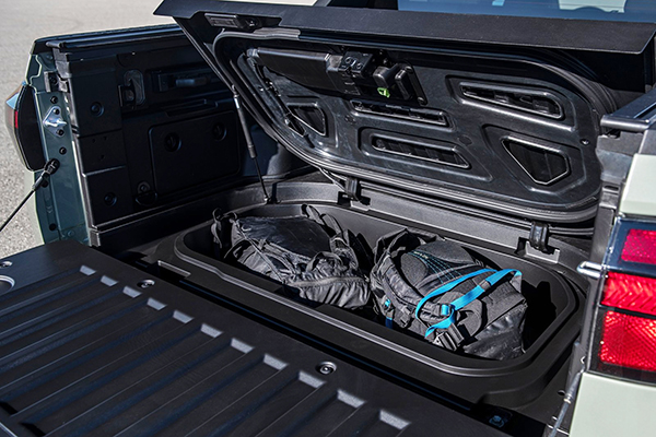 Pensada, também, para pessoas que gostam de praticar esportes, a nova picape da Hyundai foi projetada com diversas soluções interessantes, como compartimentos extras na caçamba para colocar equipamentos, porta-trecos especiais, e até um espaço por baixo do assoalho traseiro que pode servir, por exemplo, para se colocar gelo + bebidas ou roupas molhadas.