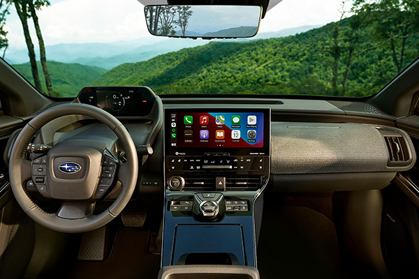 Preservando a maior característica da Subaru, o Solterra chega com um novo sistema Subaru Symmetrical All-Wheel Drive. Essa tração 4X4 entrega, sob demanda, o torque necessário para cada uma das quatro rodas. O sistema de câmeras 360° também é inédito num veículo Subaru.