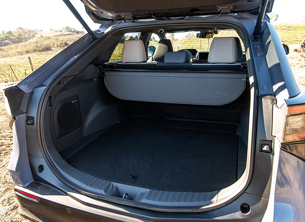 O pacote tecnológico do Solterra é completíssimo, com quatro modos de condução (Eco, Normal, Power e X-mode), controle de frenagem em descidas de baixo atrito, alerta de ponto cego, frenagem autônoma em tráfego cruzado e controle automático do farol alto. Por dentro, a cabine é ampla (comporta até 5 pessoas), tem piso quase plano e teto de vidro panorâmico.