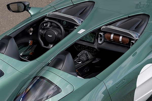 Utilizando a mais recente arquitetura de alumínio desse fabricante britânico, o V12 Speedster utiliza elementos das linhas do DBS Superleggera e Vantage para criar a sua própria identidade.