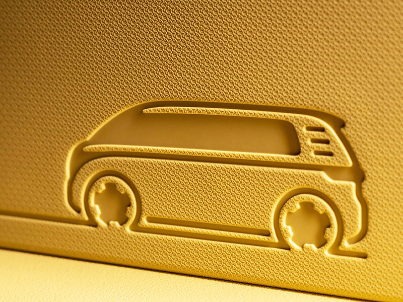 Entre eles está um tecido feito com um fio chamado Seaqual®, cujas fibras consistem em 10% de plásticos coletados nos oceanos e cerca de 90% de garrafas PET recicladas. Até mesmo o acabamento ArtVelours ´Eco´, usado pela primeira vez no ID. Buzz, tem em sua composição 71% de materiais recicláveis.