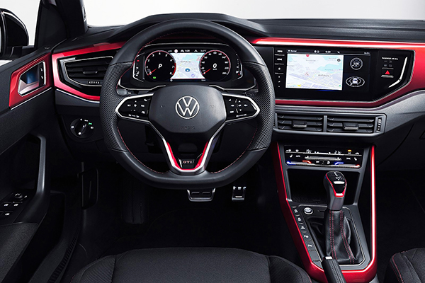 A integração de aplicativos como App-Connect Wireless para Apple CarPlay e Android Auto agora é sem fio. Assim como no Polo, os instrumentos e o sistema de infoentretenimento são organizados em um eixo visual, garantindo que possam ser visualizados e operados facilmente em qualquer situação de direção.