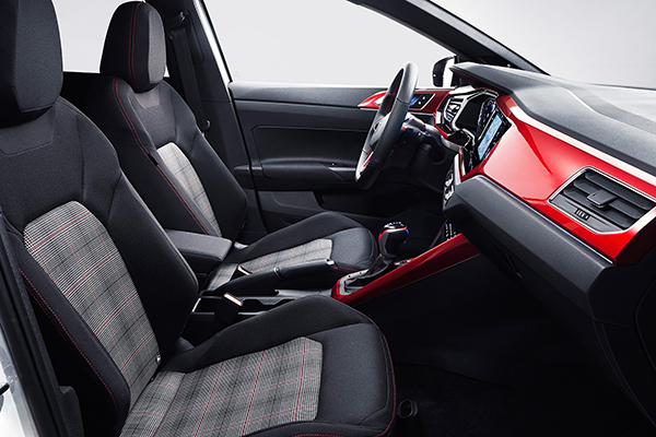O interior pode até ser considerado excêntrico pela quantidade de detalhes em vermelho. Forros de porta e teto foram mantidos na cor de acabamento Titanium Black, assim como os bancos com tecido em xadrez são típicos da linha GTi. O modelo (que, infelizmente, não é vendido no Brasil) está disponível em cinco cores: Preto peróla, Cinza metálico, Vermelho Real metálico, Branco Puro e Azul Reef Metálico.